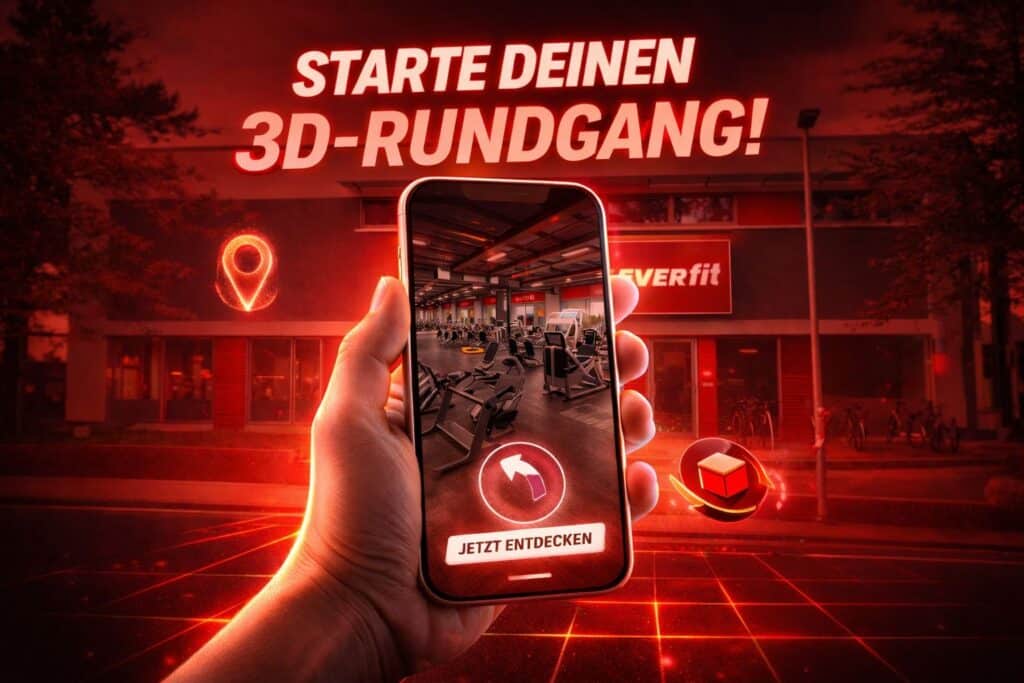 Erlebe unser Fitnessstudio schon vor deinem ersten Training – mit unserem interaktiven 3D-Rundgang. Bewege dich frei durch unsere Trainingsflächen, verschaffe dir einen realistischen Eindruck von Atmosphäre, Ausstattung und Raumgefühl und lerne unser Studio ganz entspannt online kennen.